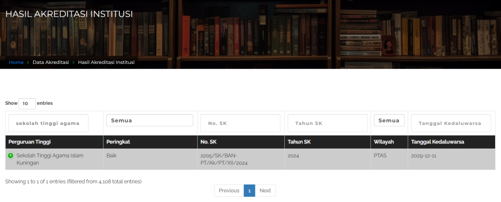 Hasil Pencarian Akreditasi STAI Kuningan Website BAN-PT